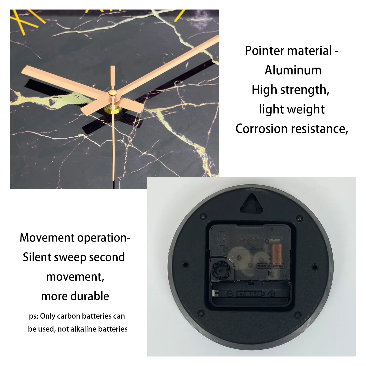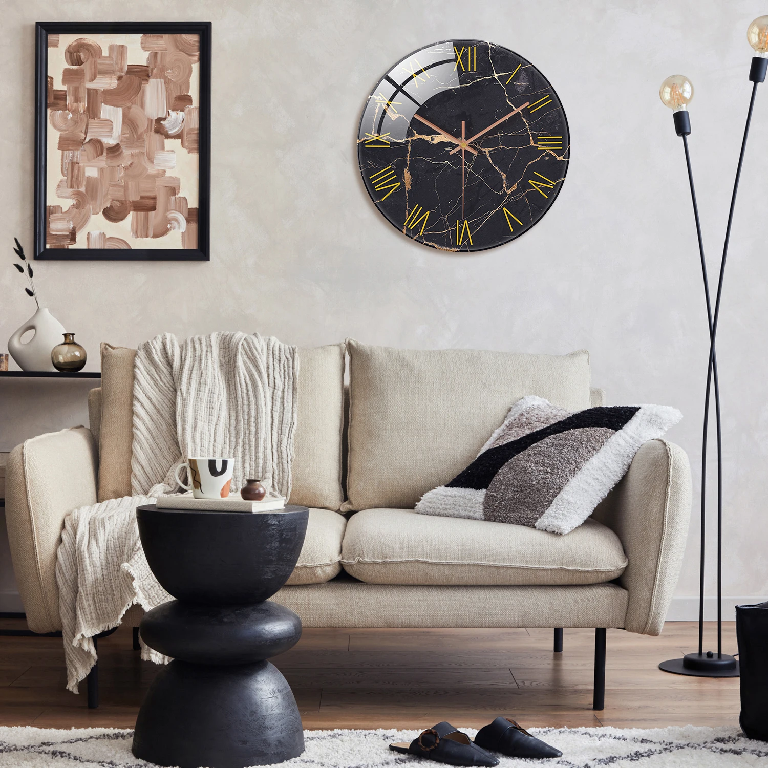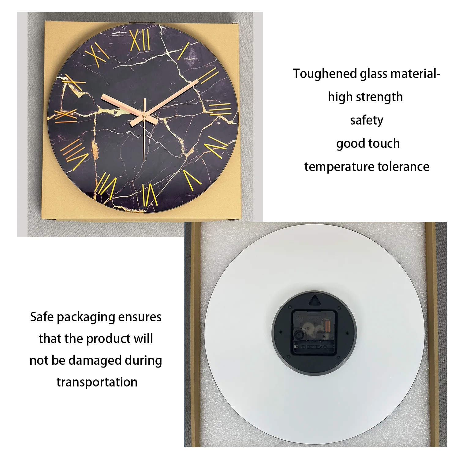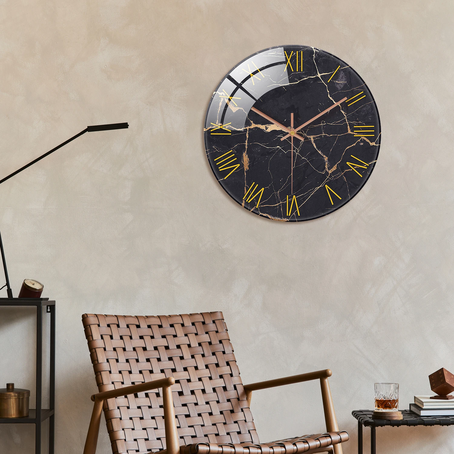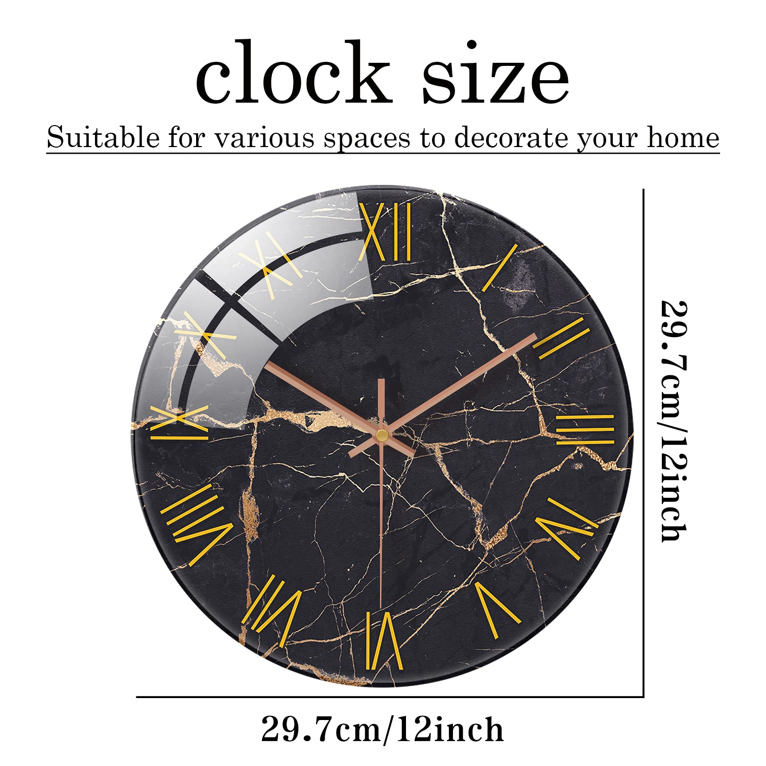 ساعة حائط من الزجاج المقسى ، نسيج رخامي أسود بسيط ، تصميم أرقام ، ساعة كتم صوت منزلي ، حديثة وكتم صوت ، 12 بوصة ، 1 عمان