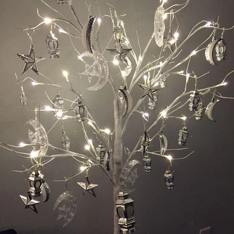 شجرة بتولا مضاءة مزينة بنجوم وهلال