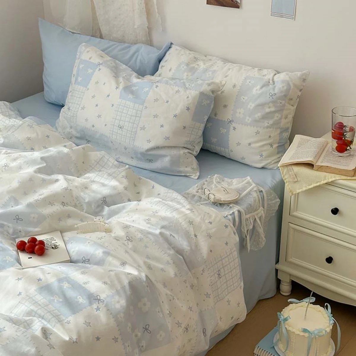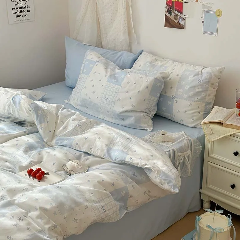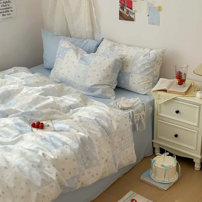 طقم غطاء لحاف أزرق مكون من 3 قطع (1 * غطاء لحاف + 2 * كيس وسادة، بدون قلب)، طقم سرير أزرق، ناعم ومريح