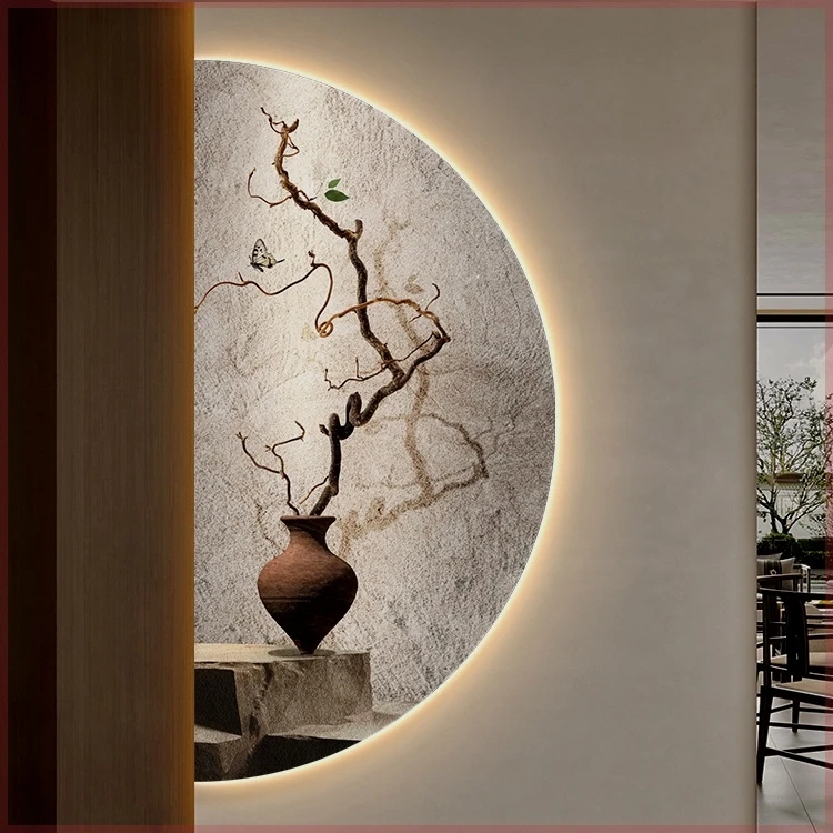 غرفة معيشة لقاعة النمط، لوحة خفيفة، جدارية ممر على الطراز الياباني، شعور راقي، غرفة معيشة تواجه الباب