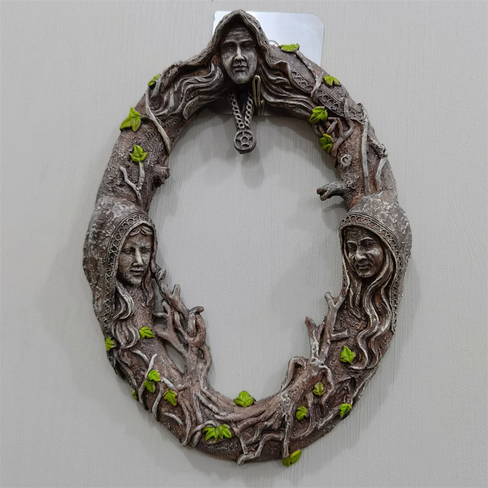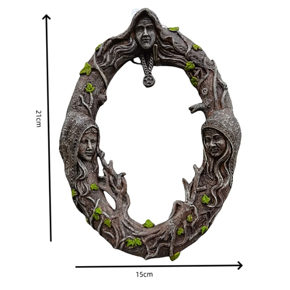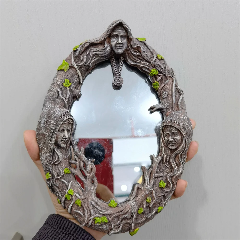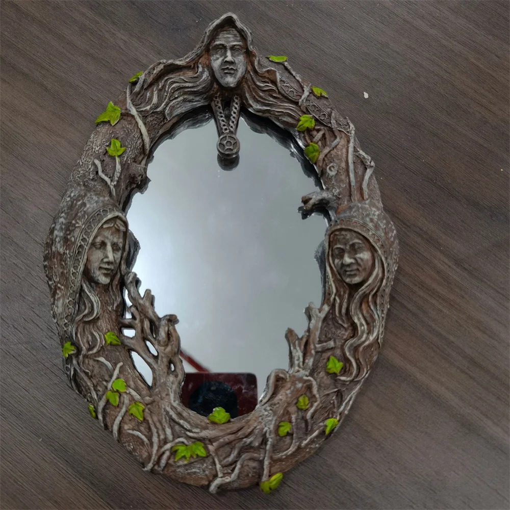 مرآة آلهة ثلاثية مع تميمة مصنوعة يدويًا من الراتنج على طراز كوخ لديكور سطح المكتب، قطعة فنية مستوحاة من الطبيعة الغامضة لغرفة النوم